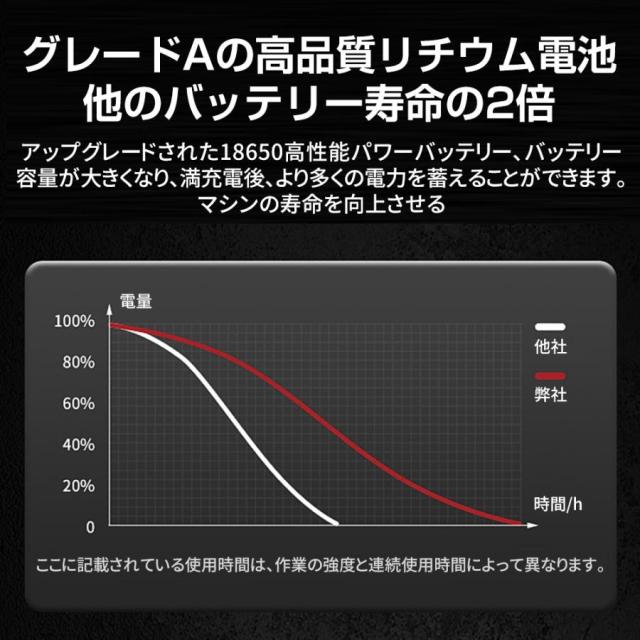 (1)1個バッテリーは約45分間に使用可能(作業状況により使用時間が異なる場合があります)
