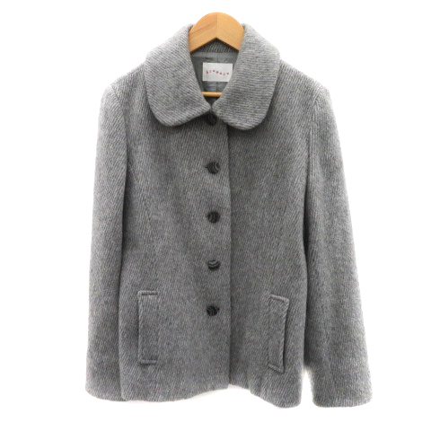 【中古】ブラマーレ bramare ステンカラーコート ショート ダイアゴナルストライプ アンゴラ混 9 グレー レディース