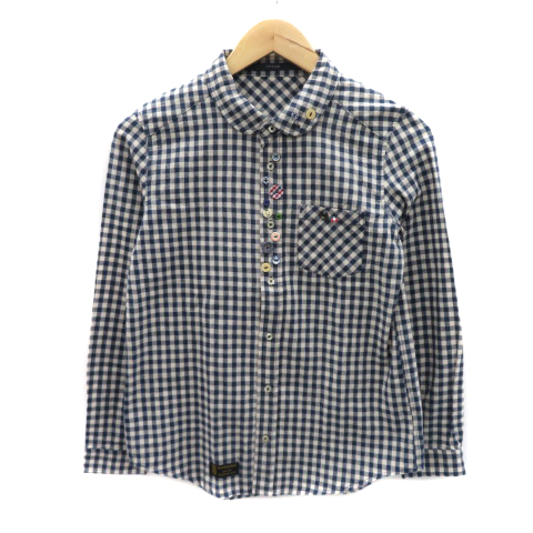 【中古】リベット&サージ カジュアルシャツ 長袖 ギンガムチェック柄 ラウンドカラー M 紺 ネイビー レディース