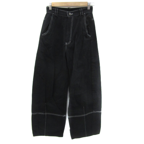 【中古】ジャバ JAVA ワイドパンツ ロング丈 ステッチ ハイウエスト L 黒 ブラック /YS7 レディース