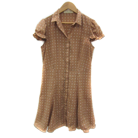 【中古】スナイデル シャツワンピース ミニ丈 半袖 スキッパーカラー ドット柄 1 M オレンジベージュ 白 レディース