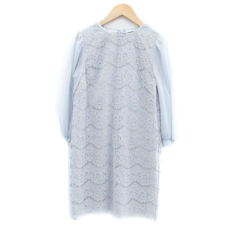【中古】クミキョク 組曲 KUMIKYOKU ワンピース ラウンドネック 七分袖 レース 切替 ミニ丈 2 M 水色 ライトブルー