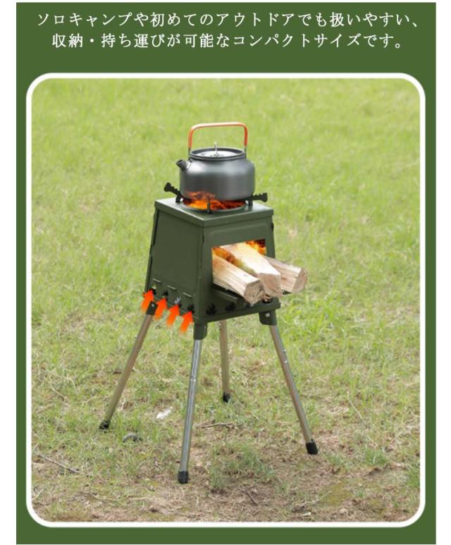 薪ストーブ 折りたたみ式 コンパクト コンロ 料理 おしゃれ ソロストーブ 高さ調整 組み立て簡単 軽量 ポータブル ピクニック キャンプストーブ キャンプ用品 バーベキュー 調理 屋外 暖炉 焚火台