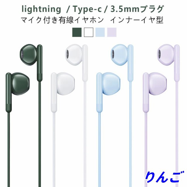 マイク付きイヤホン 有線 3.5mm Apple イヤホン lightning マイク付き Type-c インナーイヤー iphone タイプC 有線イヤホン 型 重低音 HIFI高音質 音量調整 ノイズキャンセリング 通話可能 クリア通話 iphone15 16 pro
