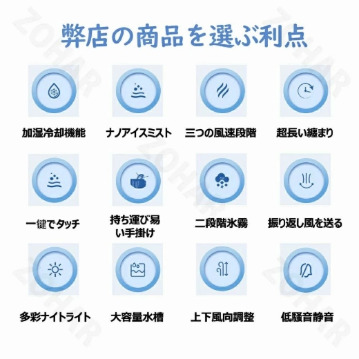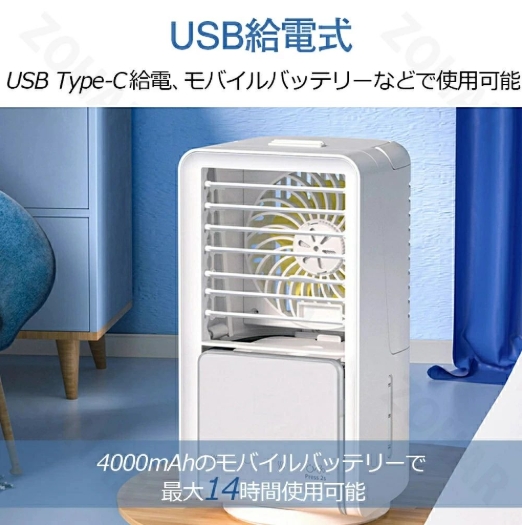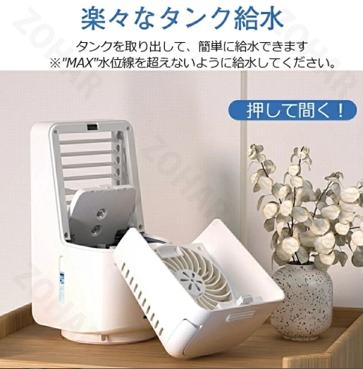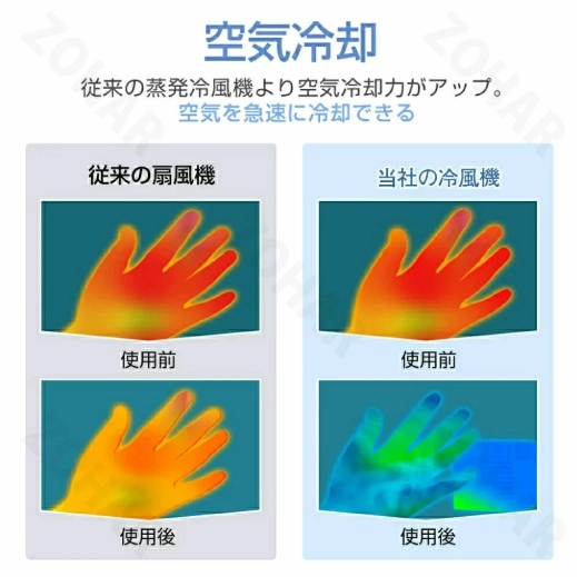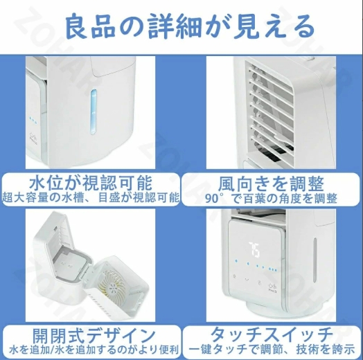 1台4役扇風機4つの機能を揃えている冷風機です。エアコンより優しい、扇風機より涼しい。暑い夏でクーラーの風が苦手な方に適用。 冷風扇として、空気を加湿し、自然の涼風を感じながら乾燥を防ぎ、暑さ対策グッズ。