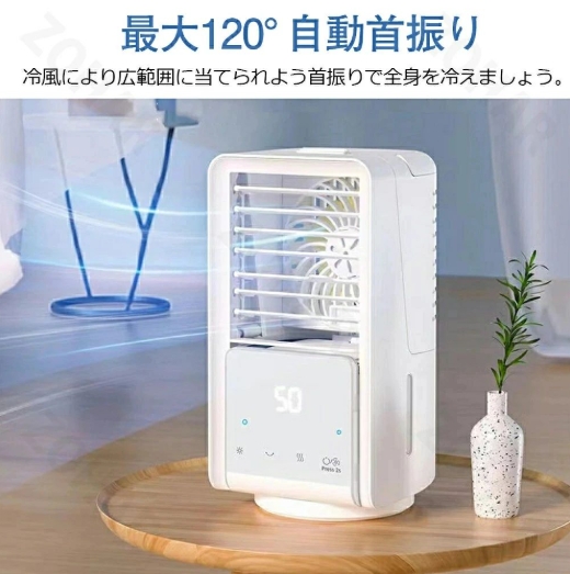 ★冷風扇は自動的左右に首振る機能を配置され、左右120°の送風範囲を提供し