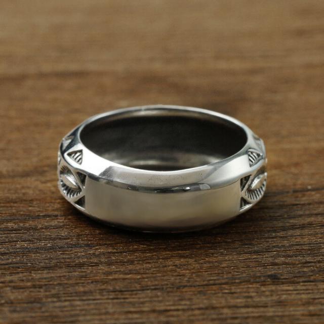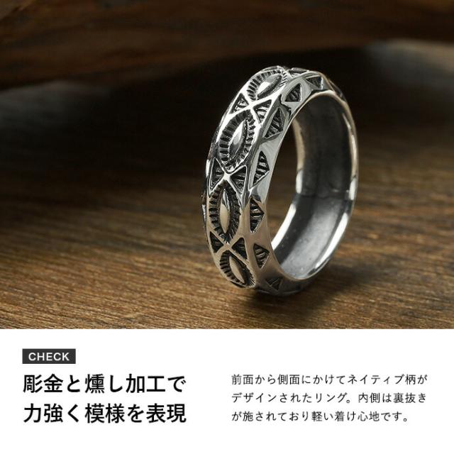 インディアンジュエリー系 リング メンズ 指輪 シルバー925 アクセサリー スタンプワーク風デザイン ネイティブ系 模様 民族風 ヴィンテージ感 シルバーリング bar-1459