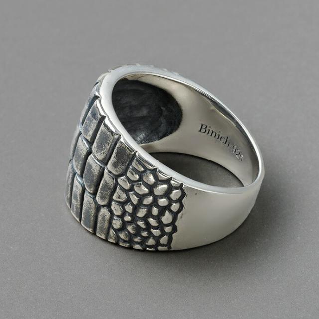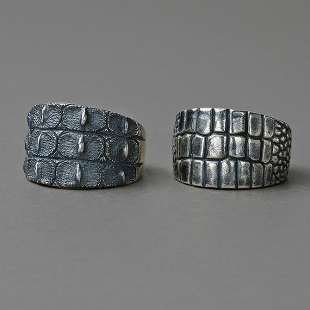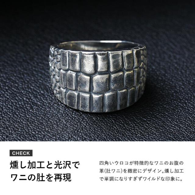 クロコダイル レザー デザイン リング メンズ 指輪 シルバー925 アクセサリー ワニ革模様 お腹 ゴツめ 太め ヴィンテージ感 アニマル柄 リアル風 シルバーリング bar-3505