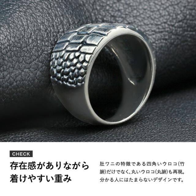 肚ワニ クロコダイル レザー デザイン リング メンズ 指輪 メンズ レディース シルバー925 アクセサリー ベリーレザー デザイン 腹 肚 ワニ わに 鰐 ワイルド ゴツめ シルバーリング