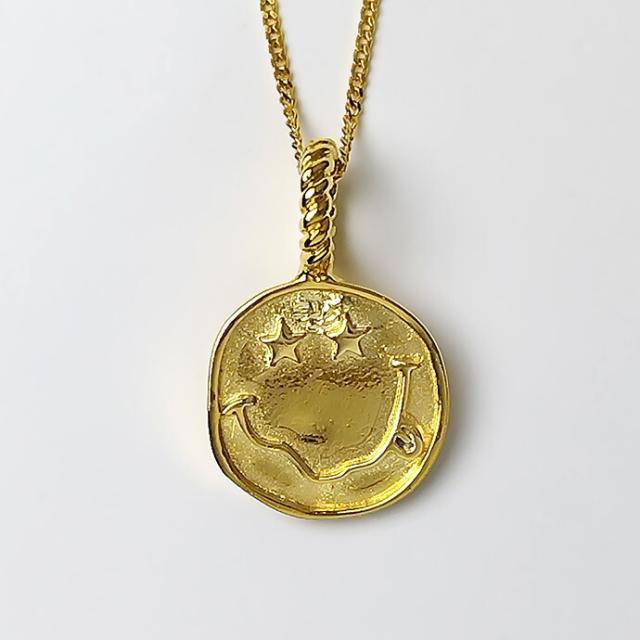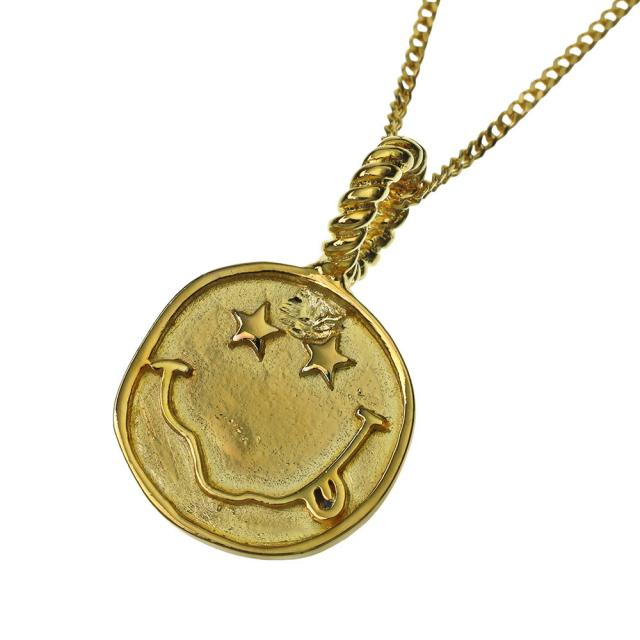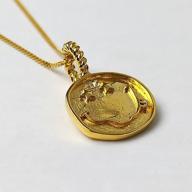 目が星(スター)になったスマイルモチーフのペンダント。ユニークなデザインながらコインネックレスのように気軽に着けられる程よいサイズと存在感です。男女ともに楽しめるポップでキャッチーなアイテムです。