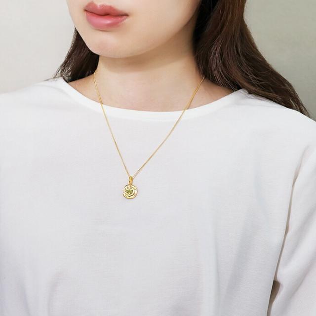 説明 | 目が星(スター)になったスマイルモチーフのペンダント。ユニークなデザインながらコインネックレスのように気軽に着けられる程よいサイズと存在感です。男女ともに楽しめるポップでキャッチーなアイテムです。 |