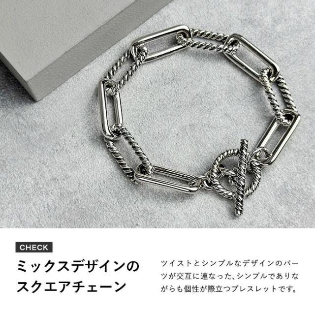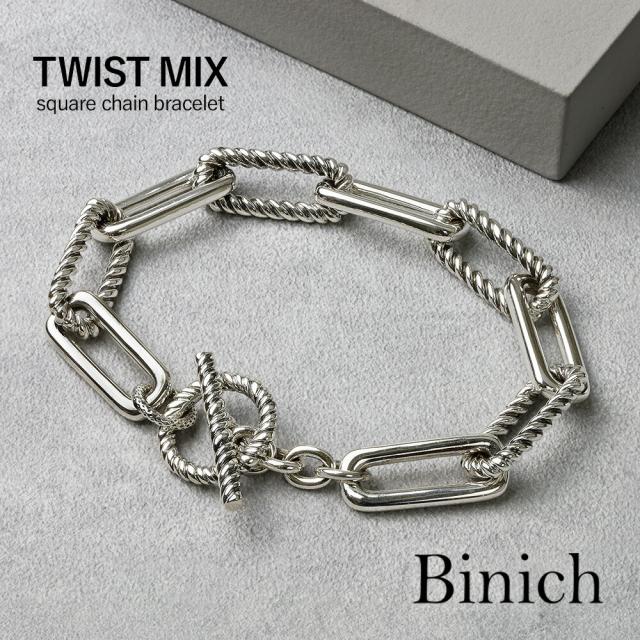 ツイスト ミックス スクエア チェーン ブレスレット シルバー925 アクセサリー ブレスレット メンズ チェーンブレス ひねり ねじり シンプル マンテル Binichオリジナル シルバーブレスレット