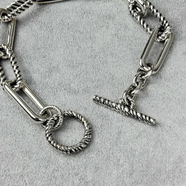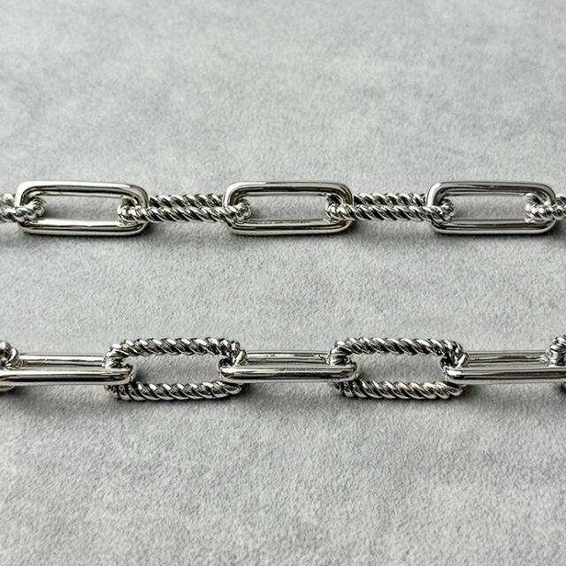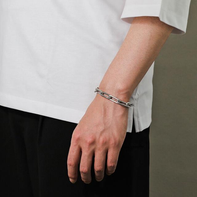 チェーンブレスレット マンテル メンズ シルバー925 ツイスト 四角形 鎖 シルバーアクセサリー 韓国風ファッション 異素材風 ネジネジ 捻り シンプル Binich限定 bab-3622