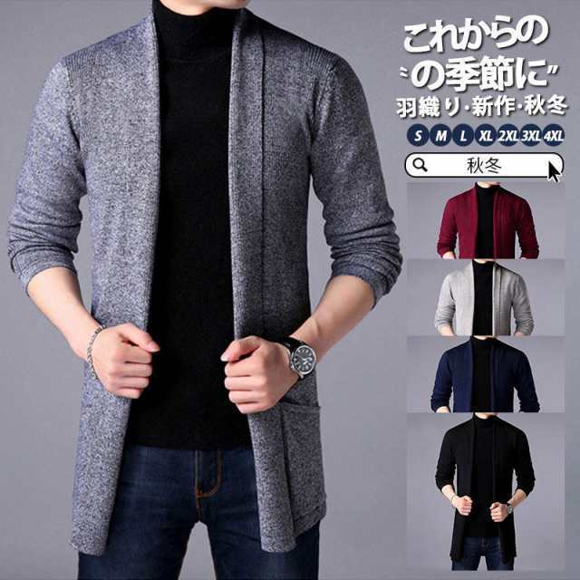カーディガン メンズ 秋冬 ニット ロングカーディガン 洗える 羽織り 秋物 パーカー ライトアウター 紳士用 スウェット 前開き