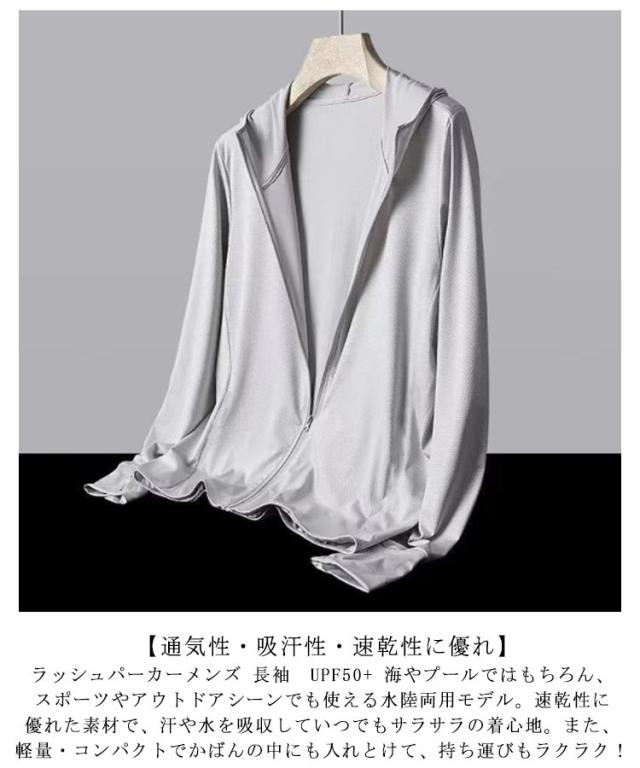 | 【お手軽簡単UV対策】羽織るだけでUV対策!お肌に有害な紫外線を98%以上カット!シンプルなカラーだから幅広い方にオススメ!様々なシーンで大活躍フード付きラッシュガード!メンズ パーカー、肌にさまざまな影響を与える紫外線から肌を守るために欠かせないアイテムです。 【着る日焼け止め】フロントファスナーはフードの端まで伸ばしているので、ケアしづらい首もラッシュガード着用で肌を守ります。用途やお好みでお選びください、あなたに合うラッシュガードが必ず見つかります。 【通気性・吸汗性・速乾性に優れ】ラッシュパーカーメンズ 長袖 UPF50+ 海やプールではもちろん、スポーツやアウトドアシーンでも使える水陸両用モデル。速乾性に優れた素材で、汗や水を吸収していつでもサラサラの着心地。また、軽量・コンパクトでかばんの中にも入れとけて、持ち運びもラクラク! 【幅広く着用できる】様々なシーンで使える1着あれば安心の万能パーカーです。海やプールに行く時、水着のアウターとしてはもちろん、通勤通学の時も日焼け止め用服としてtシャツの上に羽織るのもいいですし、寒すぎる冷房の中に必須のアウターとしても便利です。 | |