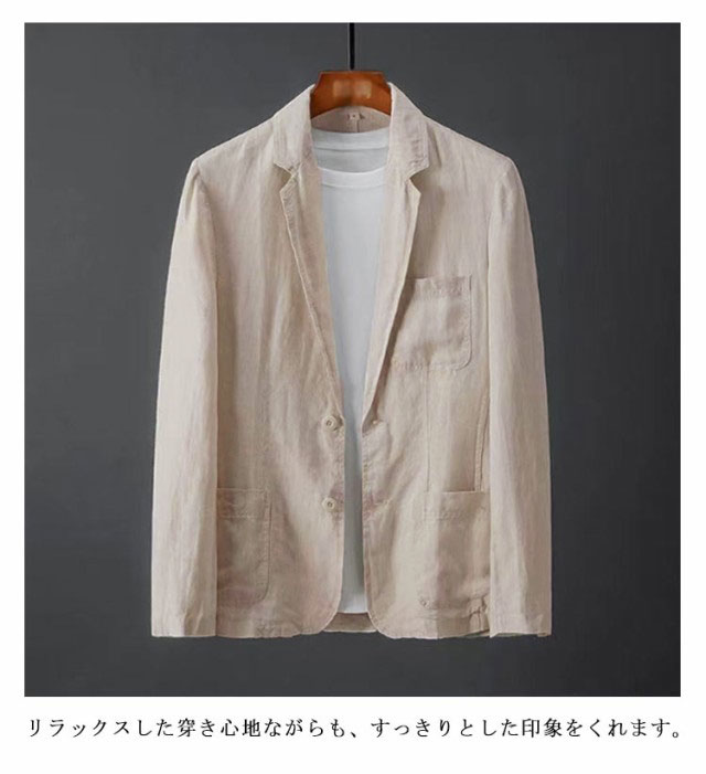 サマージャケット ゆったり 綿麻ジャケット 清涼感 リネン 爽やか 送料無料 カジュアルジャケット トップス コットン 麻混 長袖 リネンジャケット ジャケット メンズ 大人 カジュアル お洒落 無地 シンプル 通気性 春物 夏服 薄手