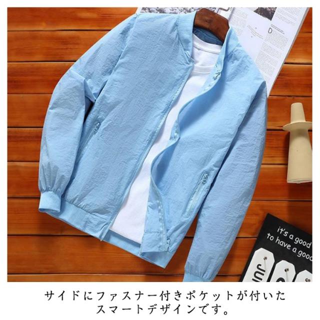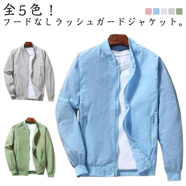大きいサイズ ジャケット 夏用 ひんやり 冷房対策 ノーカラー 冷房対策 紫外線対策 ラッシュガード UVカット ジップアップ ブルゾン 接触冷感 薄手 軽量 ジャンパー 日焼け防止 メンズ アウトドア カジュアル 大きいサイズ M L XL 2XL スタジャン