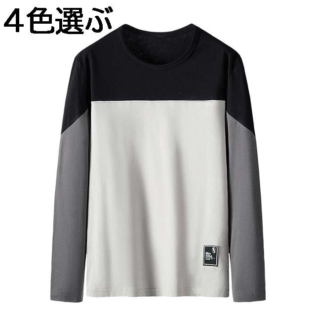 長袖Tシャツ パッチワーク 薄手 メンズTシャツ ゆったり 柄Tシャツ シンプル 大きいサイズ オシャレ カジュアルウェア 春秋 秋冬 M-3XL 4