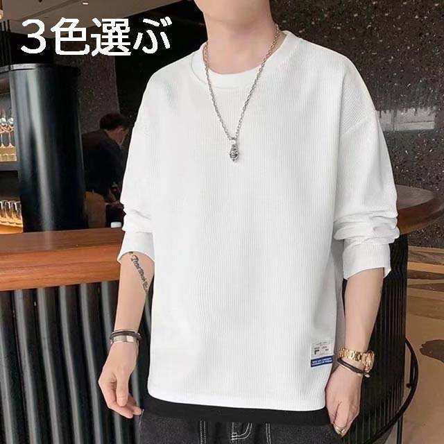 長袖tシャツ 薄手 メンズTシャツ 重ね着風 クルーネック 男 春秋 秋冬 オシャレ ?色 ゆったり 男Tシャツ M-3XL 3色選ぶ