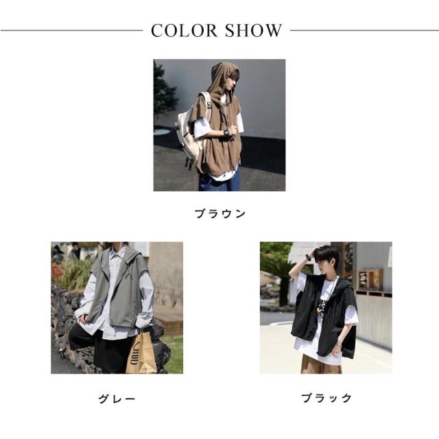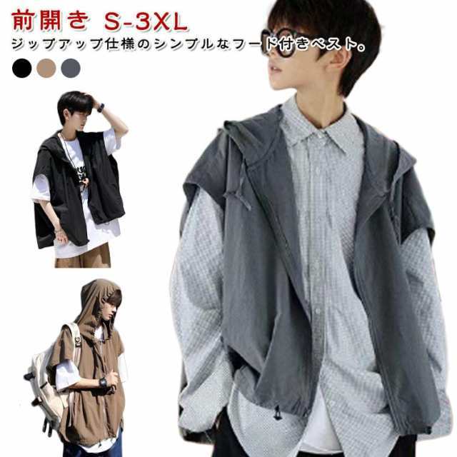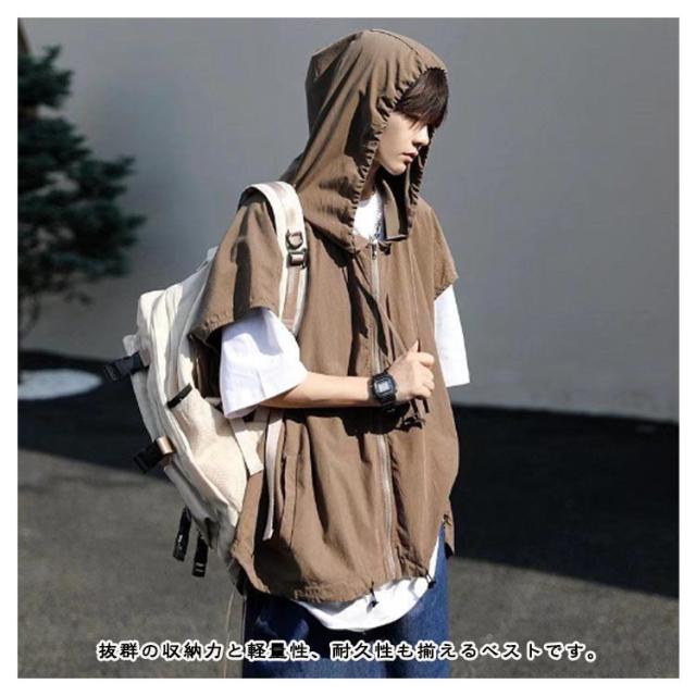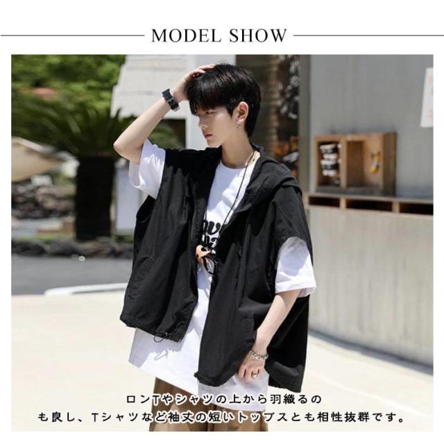 ベスト パーカー メンズ 半袖 ジップアップ ジップアップベスト パーカー フード付きベスト ジレ ノースリーブトップス 春ベスト アウトドア ゆったり 春 夏 前開き 釣り ゴルフ ベスト おしゃれ スポーツ トップス 個性的 カジュアル 普段着 お洒落 送料無料