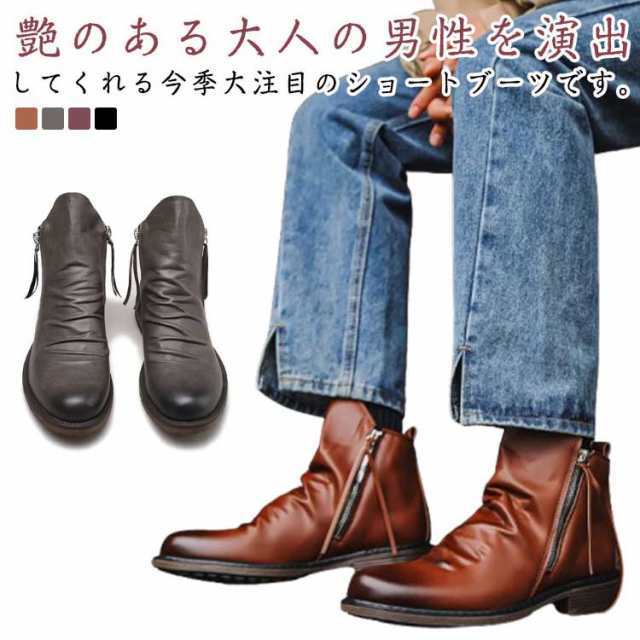 ブーツ ショートブーツ ドレープブーツ 紳士靴 メンズブーツ ワークブーツ チャッカブーツ エンジニアブーツ サイドジッパー フォーマル カジュアルシューズ ショートブーツ 履きやすい 春 秋 冬 滑らない 大きいサイズ 送料無料