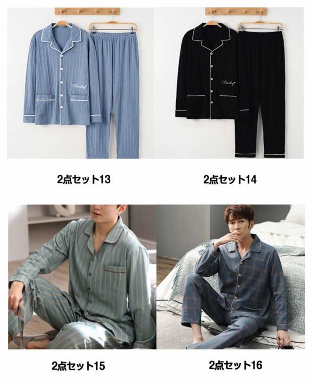 寝巻き パジャマ メンズ 長袖 春 秋 前開き チェック柄 薄手 長袖 Tシャツ 長ズボン 2点セット ルームウェア 上下セット 綿 コットン ナイトウェア 入院 男性 紳士 部屋着 ルームウェア 入院 ロングパンツ リラックスウェア 大きいサイズ 父の日 ギフト 敬老の日 送料無料
