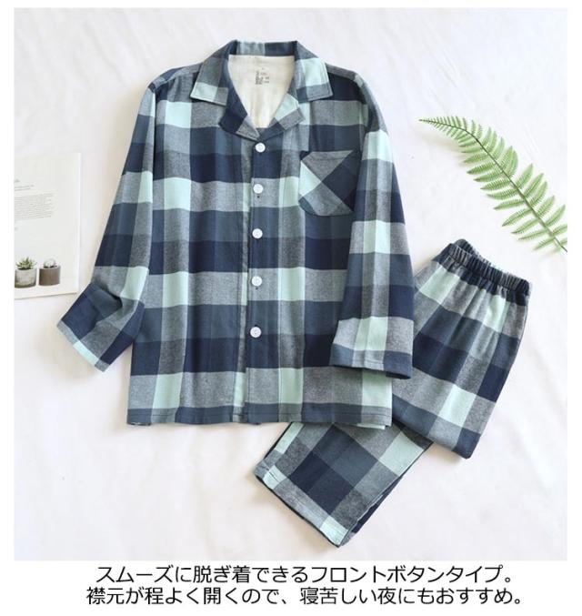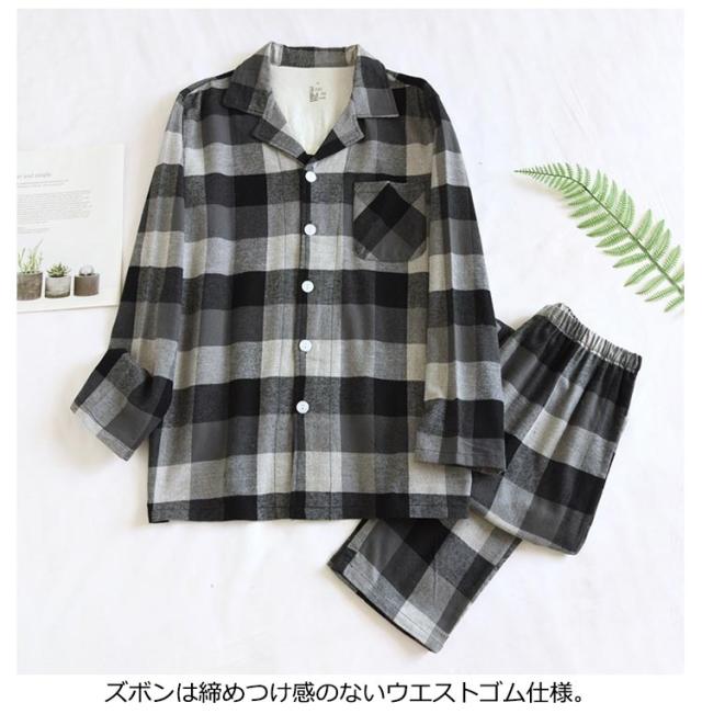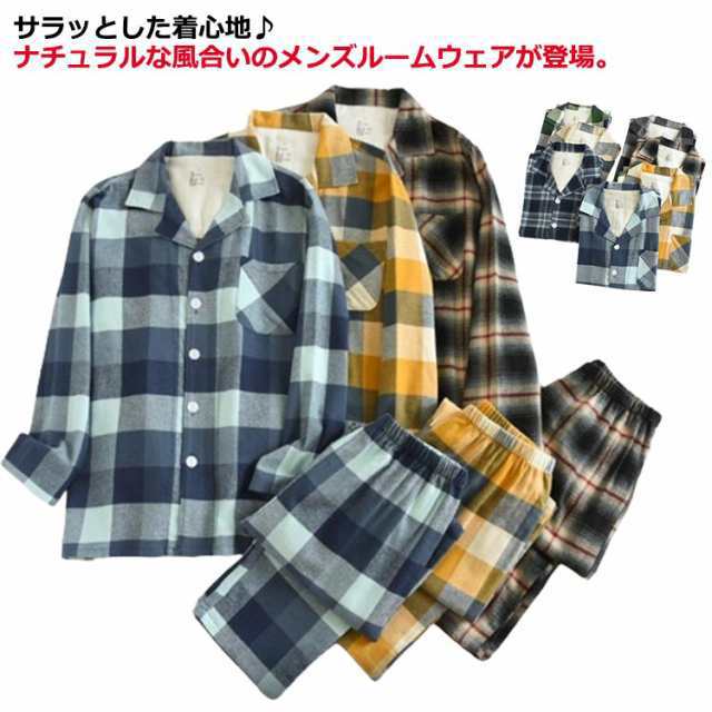 送料無料 パジャマ メンズ 春秋冬 セットアップ ルームウェア 上下セット 長ズボン チェック柄 前開き 長袖 男性用 大きいサイズ ナイトガウン 部屋着 カジュアル おしゃれ 寝巻き ナイトウェア 入院着 大人 着心地 ゆったり リラックス
