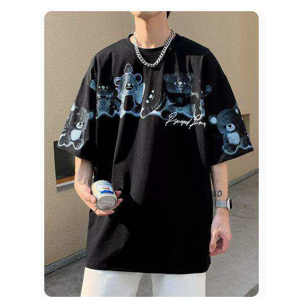 半袖Tシャツ メンズ tシャツ 夏 熊柄 ゆったり カットソー ティシャツ サマー クマ柄 可愛い お兄系 2022 綿