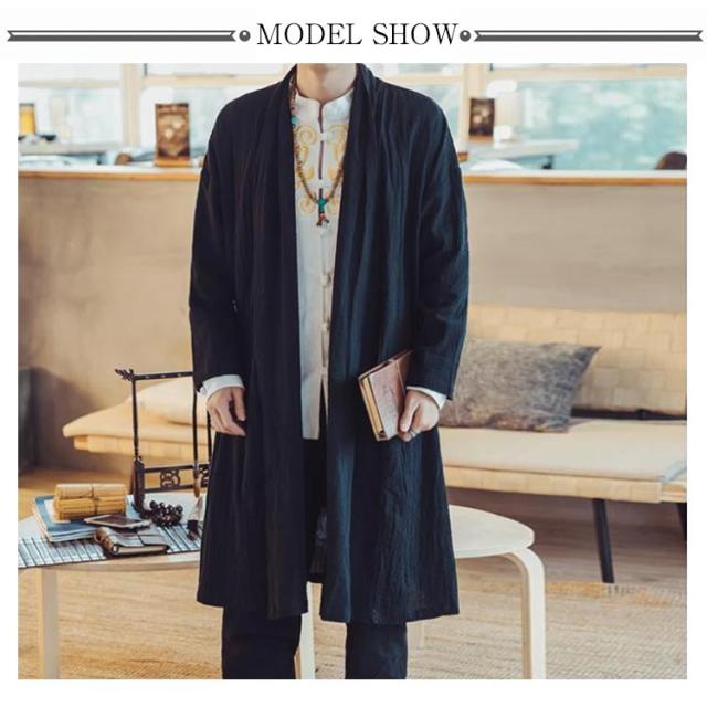 送料無料 カーディガン 羽織り ロング丈 メンズ 無地 長袖 薄手 春服 綿麻 リネン トップス ライトアウター 和風 上着 ロングカーディガン ゆったり 春夏 モード系 父の日