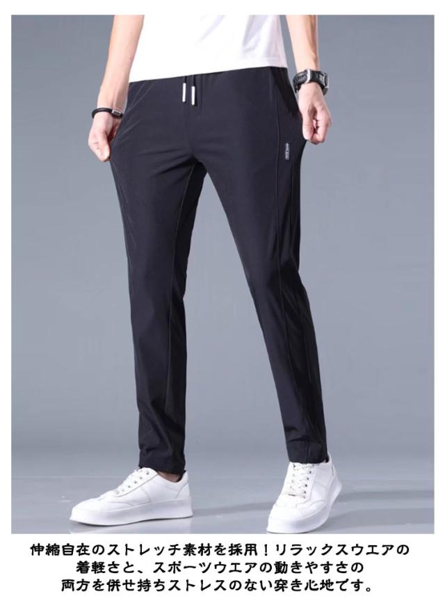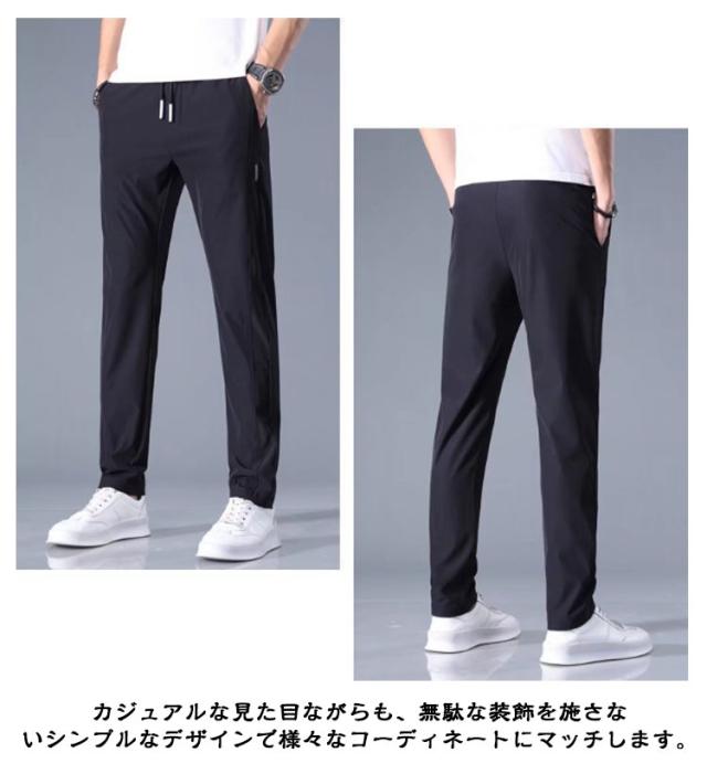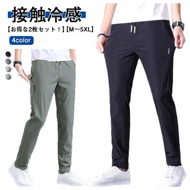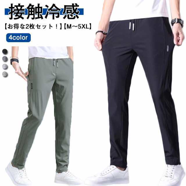 【2枚セット】アイスシルクパンツ 冷感パンツ メンズ チノパン 接触冷感 ひんやり 涼しい ロングパンツ イージーパンツ 薄手 ゴルフパンツ ストレッチ 伸縮 通気 速乾 スポーツパンツ カジュアル 無地 大きいサイズ 夏 春 秋 クール感 uvカット 涼しい ゆったり 送料無料