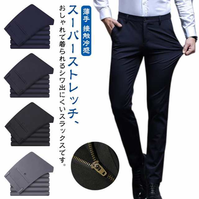 スラックス メンズ アイスシルクパンツ 紳士パンツ ビジネススラックス スリムパンツ ノーアイロン ストレッチ ストレートパンツ 薄手 美脚 接触冷感 おしゃれ オフィス ビジネス カジュアル 通勤 仕事着 スーツパンツ ストレッチパンツ 春 夏 送料無料