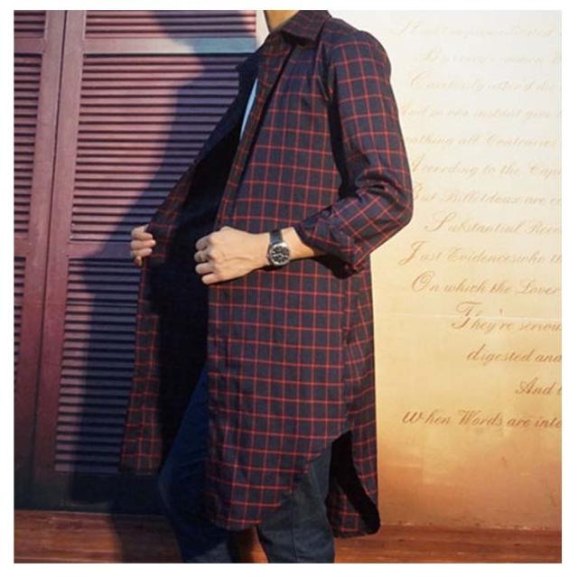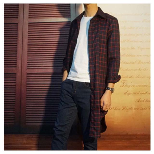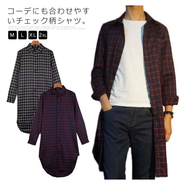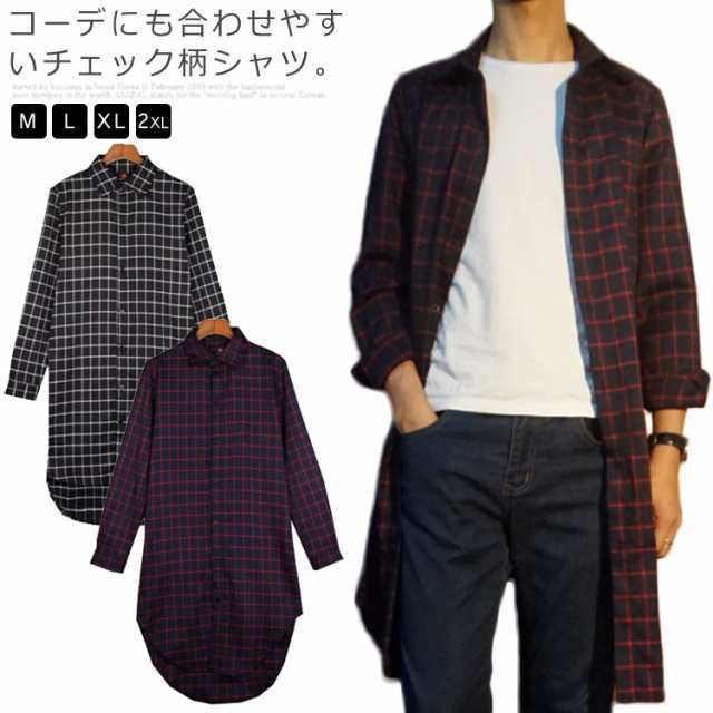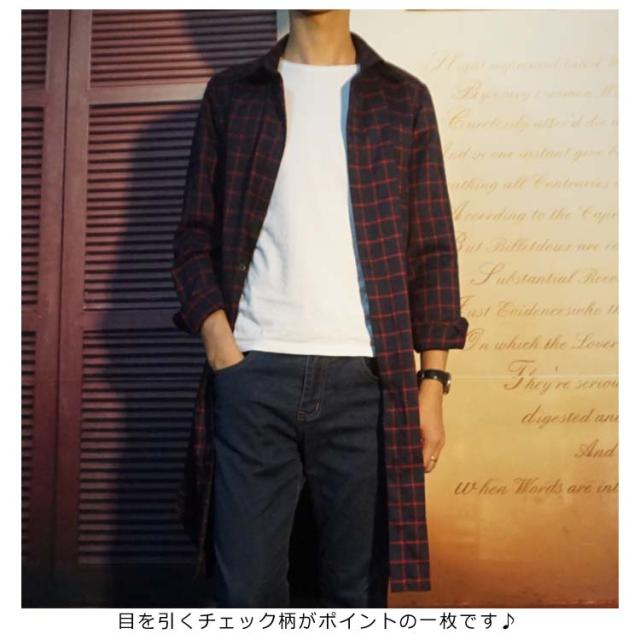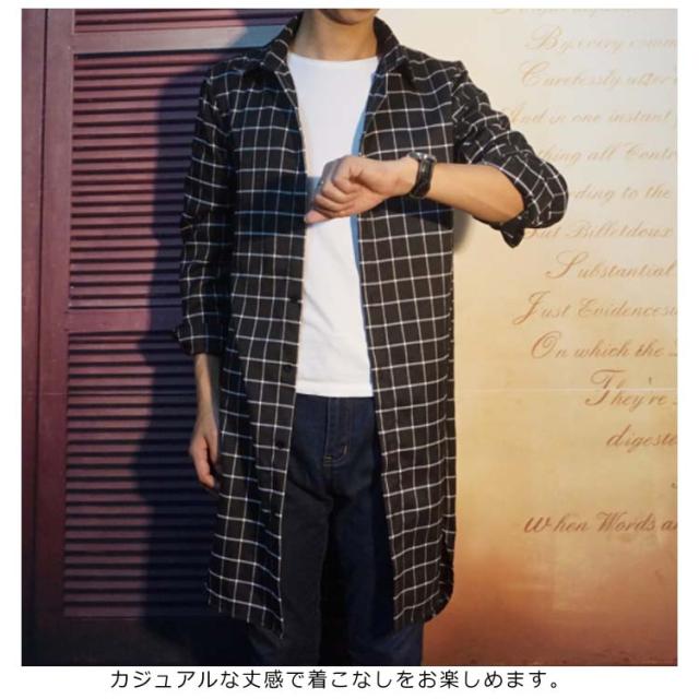 メンズファッション感!ネルシャツ ロング丈 長袖シャツ メンズ 薄手 スプリングコート アウター チェック柄 カジュアル トップス 春物 ネルチェックシャツ