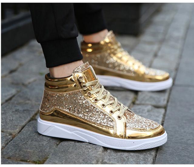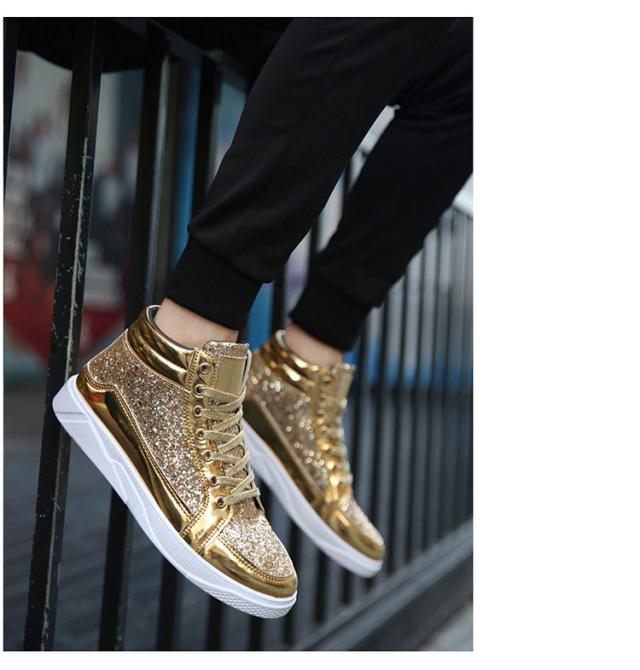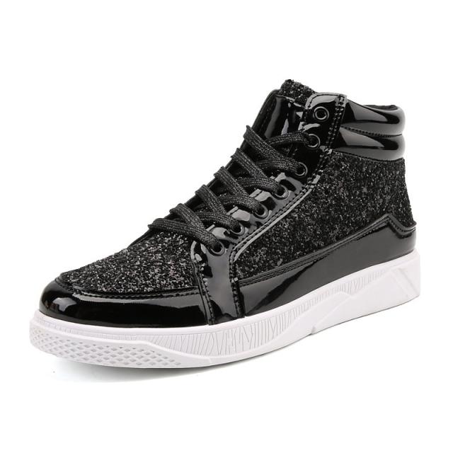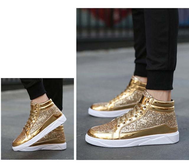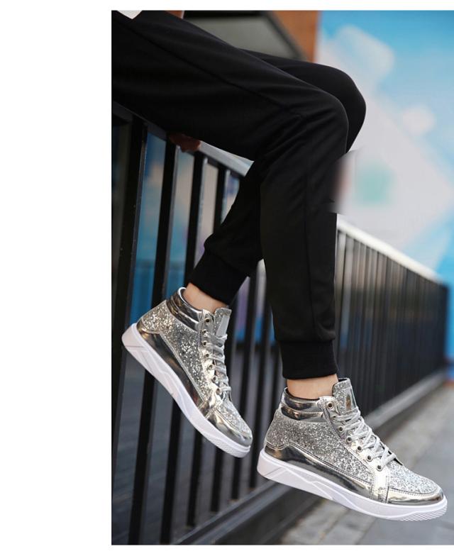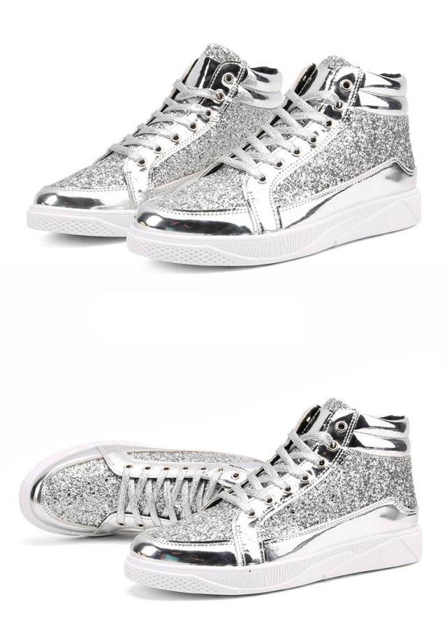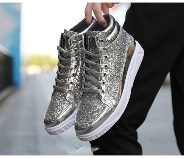 スニーカー メンズ グリッター ラメ キラキラ スパンコール ハイカット レースアップ 滑りにくい 幅広 おしゃれ ヒップホップ ストリート系