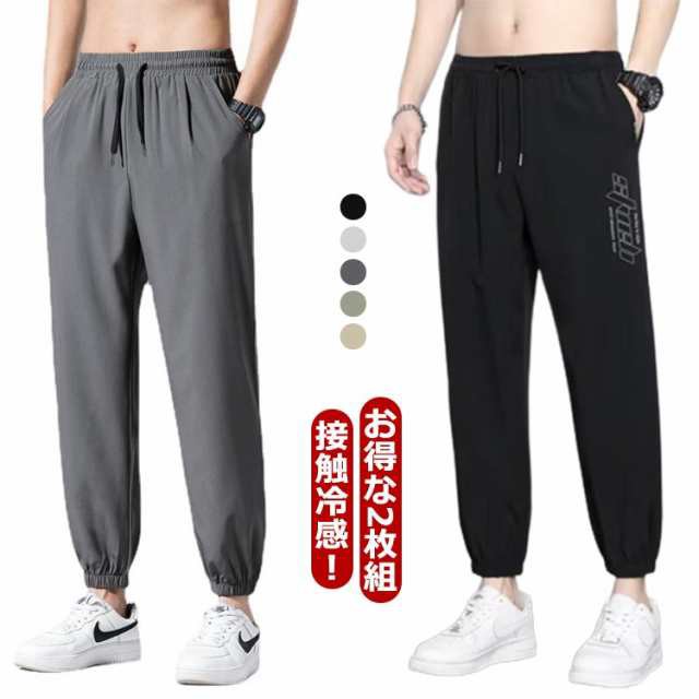 【2枚組】 冷感パンツ メンズ ジョガーパンツ チノパン アイスシルク ズボン ロングパンツ ストレッチ 接触冷感 速乾 ストレッチ接触冷感速乾カジュアルパンツ ゴルフパンツ 軽量 通気 薄手 夏 涼しい スウェット