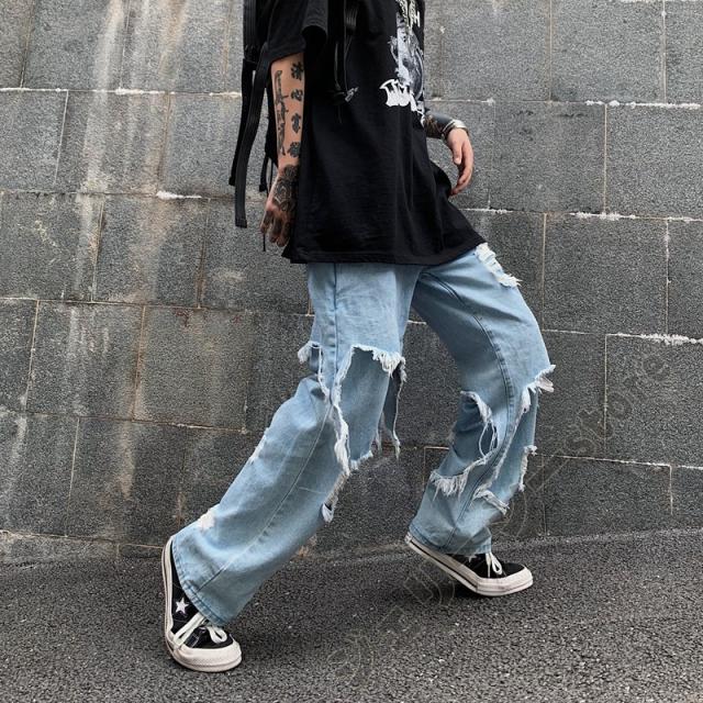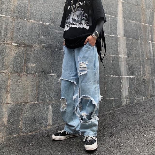 ロングパンツ デニムパンツ デニム ダメージ加工 ブラック ブルー ダンスボトムス ダンス衣装 運動着 舞台服 ストレート
