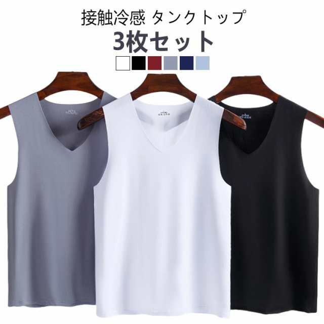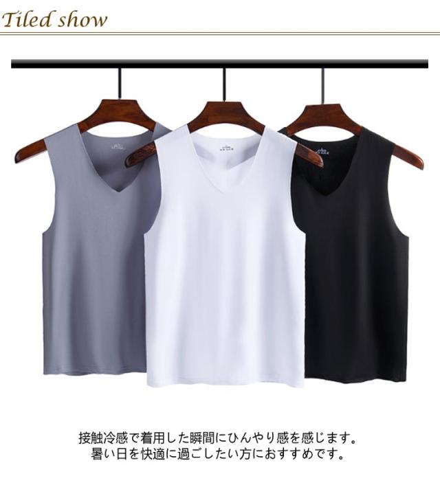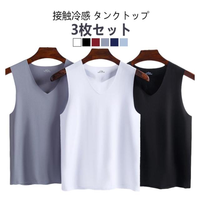 【3枚セット】接触冷感 タンクトップ メンズ ンナーシャツ Vネック 肌着 速乾 通気 シームレス トップス ノースリーブ ひんやり 涼しい 吸汗速乾 春夏 夏用 アンダーウエア ビジネス カジュアル レイヤード 重ね着 送料無料