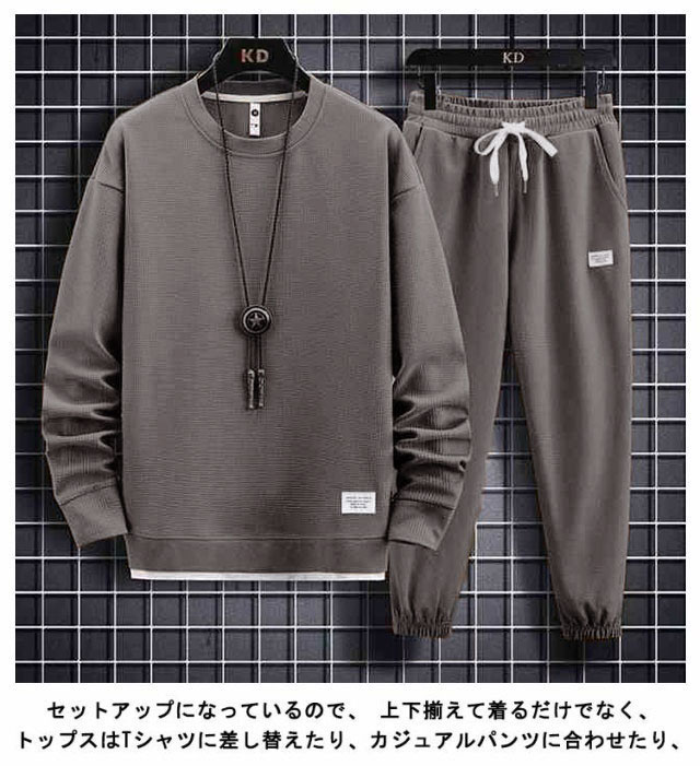 | M-5XL!シンプルなデザインながらシルエットで魅せるスウェットセットアップ。 スウェット生地、シワになりにくく伸縮性のある、着心地抜群の素材です フードなし仕様のためカジュアルシーンからスポーツ、ルームウェアにもオススメです セットアップになっているので、 上下揃えて着るだけでなく、トップスはTシャツに差し替えたり、カジュアルパンツに合わせたり、 | |