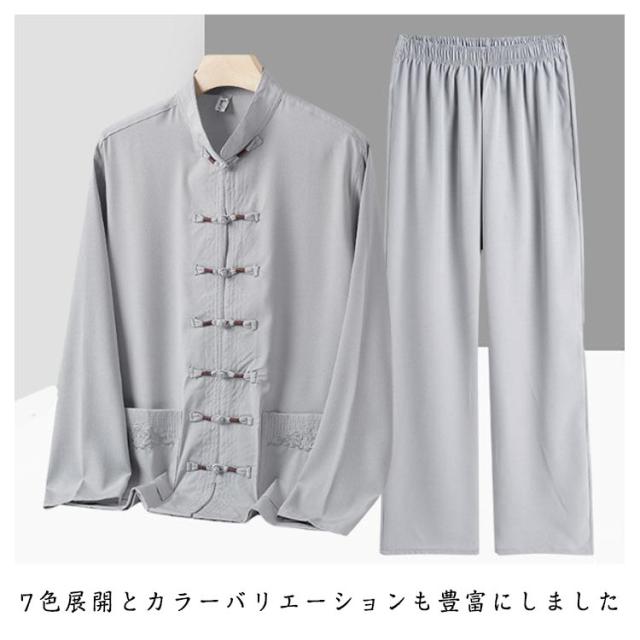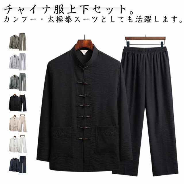 チャイナ服 前開き 中華服 ブラウス メンズ 2点 セットアップ チャイナボタン 上下 メンズ 長袖 カジュアル 中国風カンフー衣装 太極拳ウエア 華流 武術 カンフーコスプレ衣装 男性用 おしゃれ チャイナシャツセット ステージ衣装