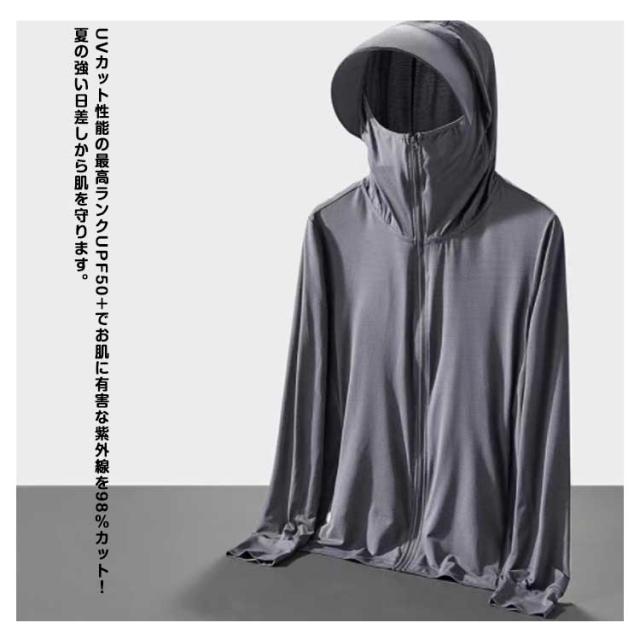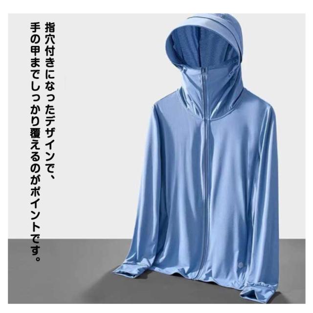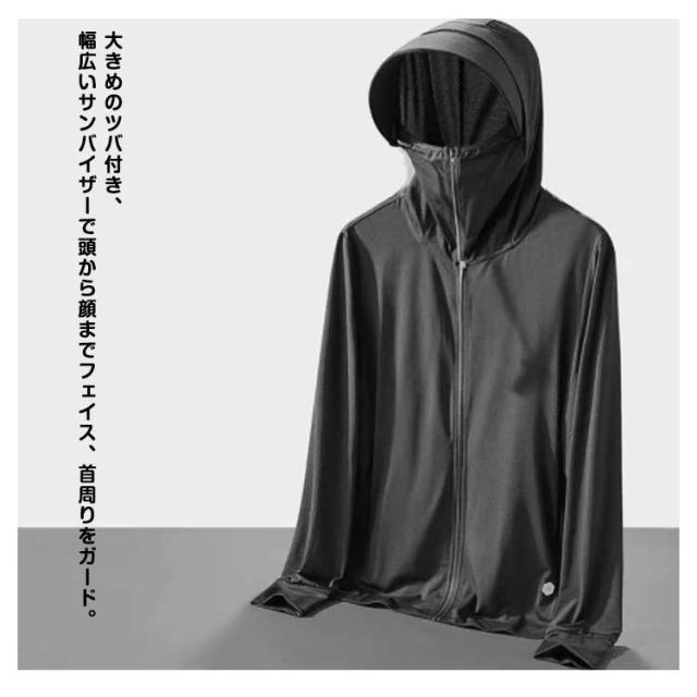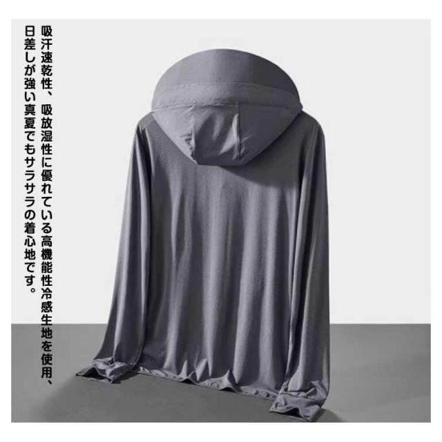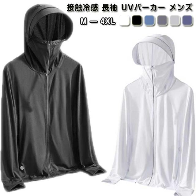 釣り 大きいサイズ つば パーカー UVパーカー ラッシュガード 接触冷感 アウター メンズ 長袖 トップス ライトアウター 薄手 指穴 ストレッチ シャリ感 速乾 UV対策 紫外線対策 日焼け防止 ウトドア 登山 UVカット 通勤 通学 春
