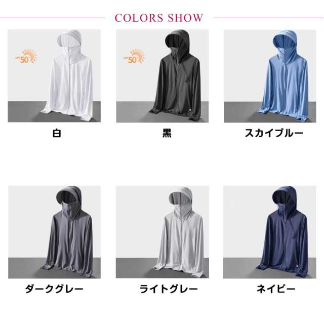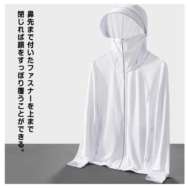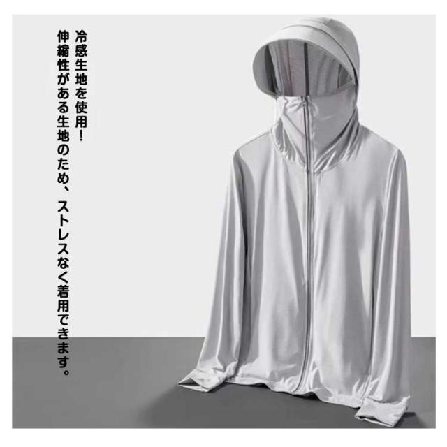 | 冷感生地を使用!伸縮性がある生地のため、ストレスなく着用できます。 UVカット性能の最高ランクUPF50+でお肌に有害な紫外線を98%カット!夏の強い日差しから肌を守ります。 吸汗速乾性、吸放湿性に優れている高機能性冷感生地を使用、日差しが強い真夏でもサラサラの着心地です。 指穴付きになったデザインで、手の甲までしっかり覆えるのがポイントです。 大きめのツバ付き、幅広いサンバイザーで頭から顔までフェイス、首周りをガード。 鼻先まで付いたファスナーを上まで閉じれば顔をすっぽり覆うことができる。 | |