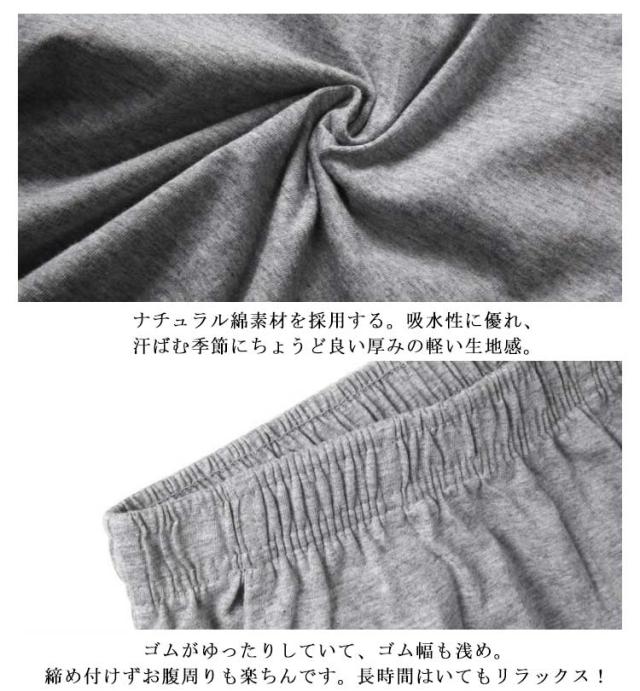 | 部屋着&パジャマに!何枚も欲しくなる心地よさスウェットショートパンツ ナチュラル綿素材を採用する。吸水性に優れ、汗ばむ季節にちょうど良い厚みの軽い生地感。 ゴムがゆったりしていて、ゴム幅も浅め。締め付けずお腹周りも楽ちんです。長時間はいてもリラックス! おうち時間やパジャマ、ちょっとしたお出かけにもご着用いただけます。 使いやすいカラーのブラック、ダークグレー、ライトグレー、ネイビーよりお選びいただけます。 | |