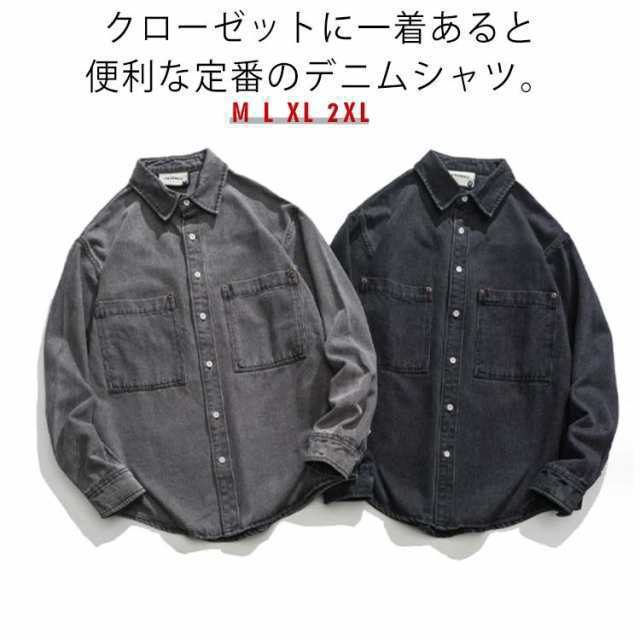デニムシャツ ブラック メンズ 長袖 アメカジ ワークシャツ ツイル生地 厚手 シャツ 羽織り 春 秋 冬 デニム 長袖シャツ 黒 ゆったり オーバーサイズ メンズファッション 秋服 秋物 ライトアウター カジュアルシャツ ストリート 【送料無料】