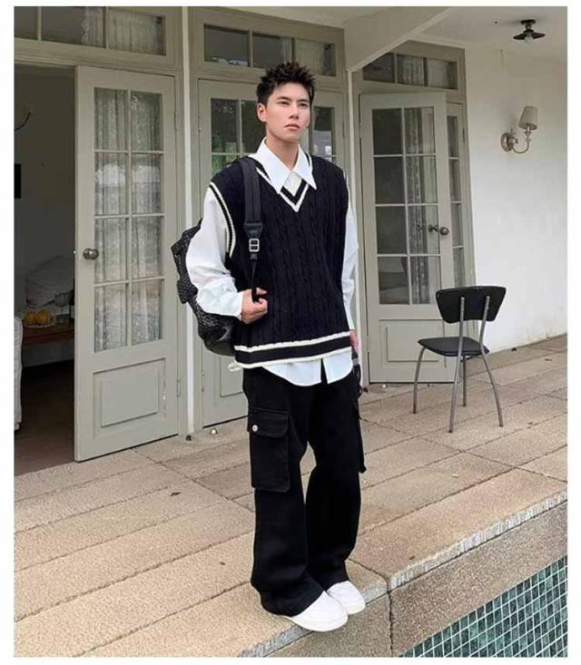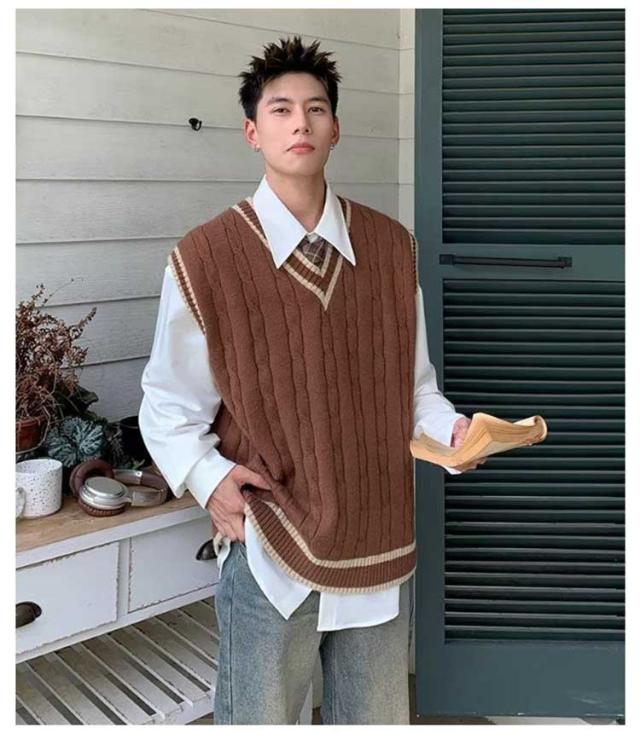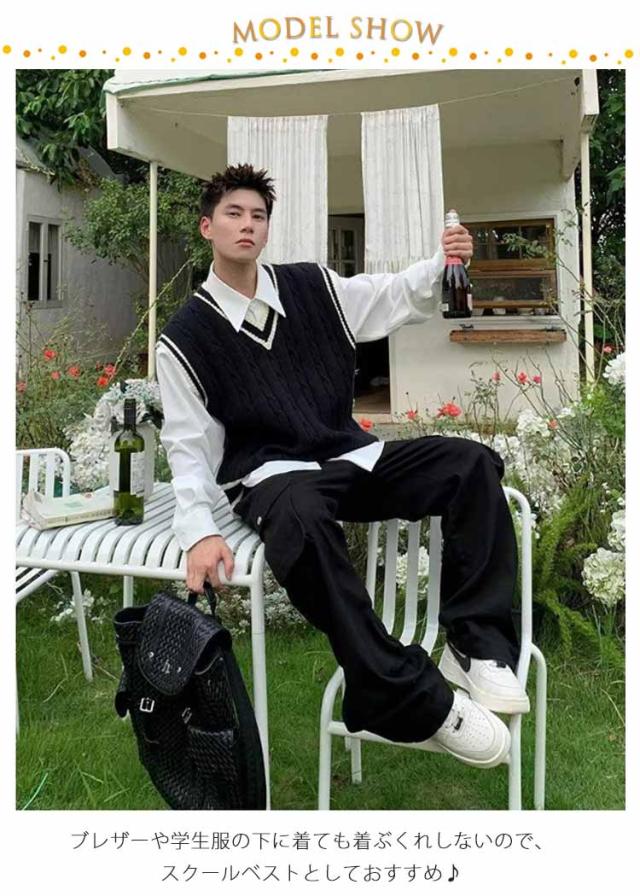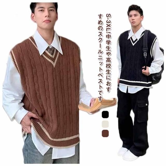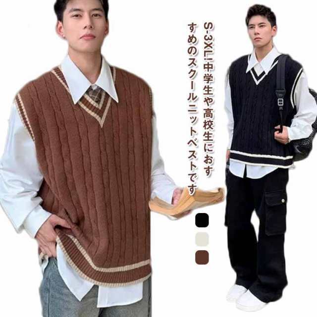 メンズ Vネック スクールニット Vネックベスト スクールベスト ニットベスト 男子 ニット ベスト 学生 トップス ノースリーブ ベスト 無地 スクールニット カジュアル 大きいサイズ 制服 シンプル 高校生 中学生 ジレ チョッキ 通学 通勤 春 秋 冬