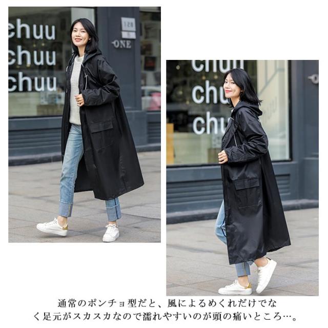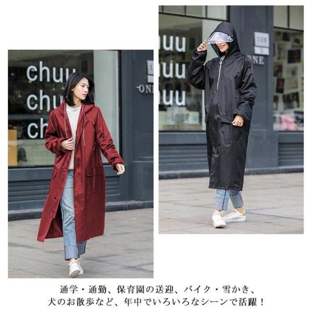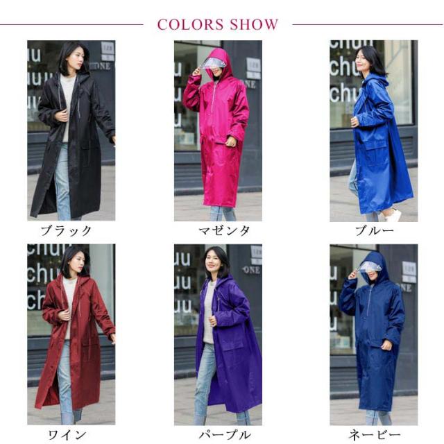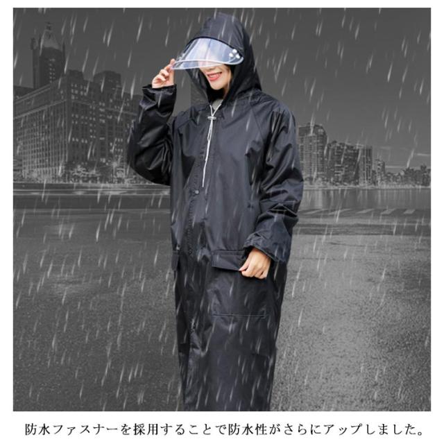 レインポンチョ レインコート 男女兼用 袖あり カッパ 前開きジッパー ポンチョ レインウェア レインコート 袖付き メンズ 雨合羽 自転車 バイク おしゃれ ロング クリアバイザー 雨具 アウトドア レディース