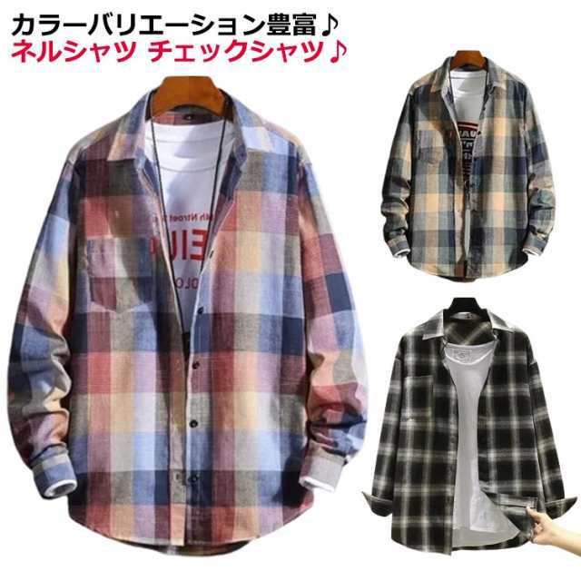 チェックシャツ メンズ 腰巻 長袖シャツ ワークシャツ 柄シャツ おしゃれ ペアルック 服 カジュアル ネルシャツ カップル チェック チェックネルシャツ 冬 秋服 秋 冬服 シャツ 春服 カジュアル 柄シャツ