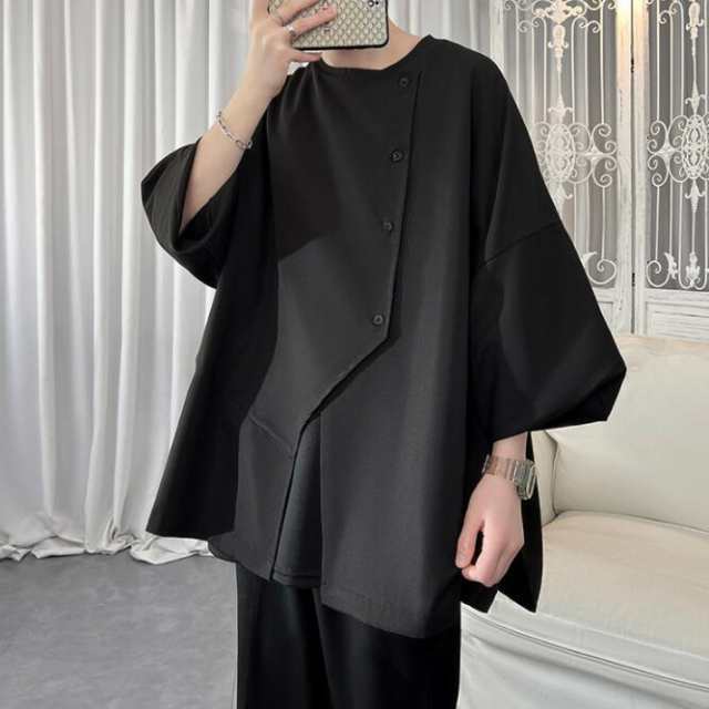 シャツ 長袖 カットソー 変形 シャツコート ロング丈 カジュアルシャツ メンズシャツ ドレスシャツ