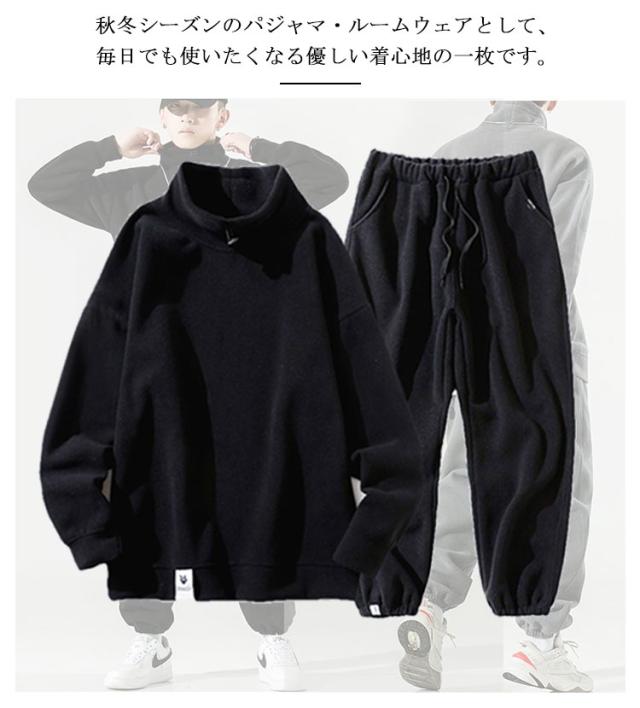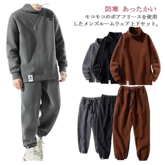 長袖 メンズ 上下セット あったか スウェット ふわふわ 秋冬 セットアップ 寝巻き パジャマ おしゃれ ブラウン 部屋着 ルームウェア 着る毛布 大きいサイズ タートルネック 暖かい パンツシンプル 無地 黒 フリース