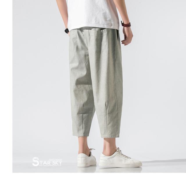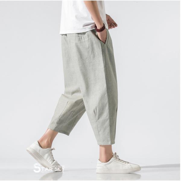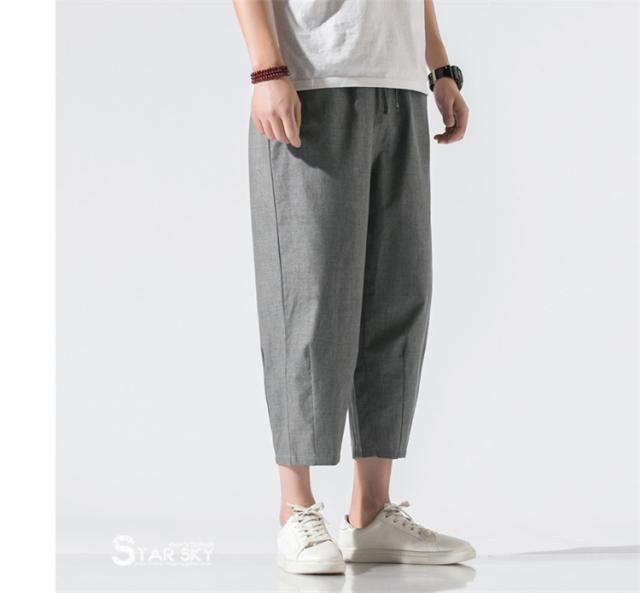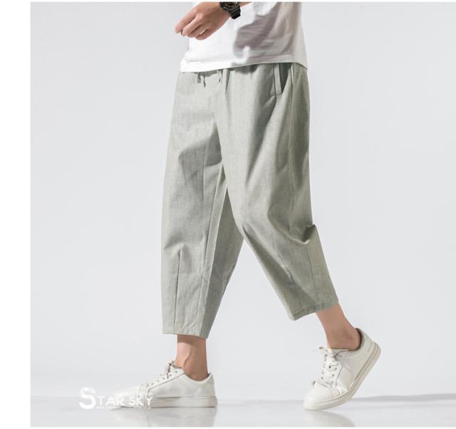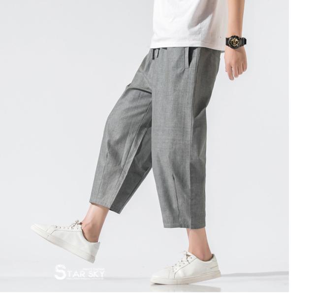 40代 50代 クロップドパンツ メンズ バギーパンツ スラックス ワイドパンツ 9分丈パンツ 夏物 ズボン グレー