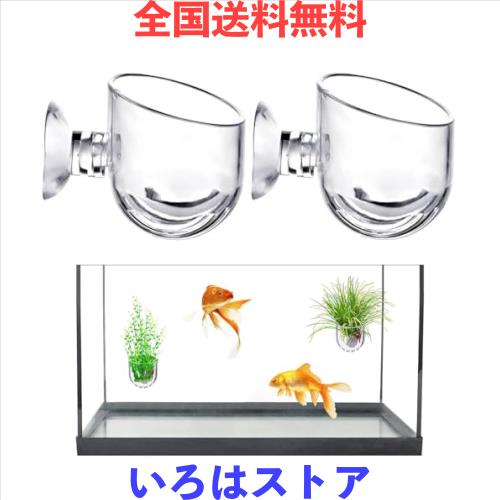 水族館の植物カップ 2個セット アクリル水槽水草カップ 水槽鉢 水草ポット 水生植物 ポット 餌やり器 赤虫 エサトレイ 壁掛け水槽 飾り
