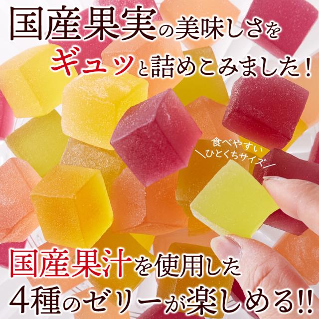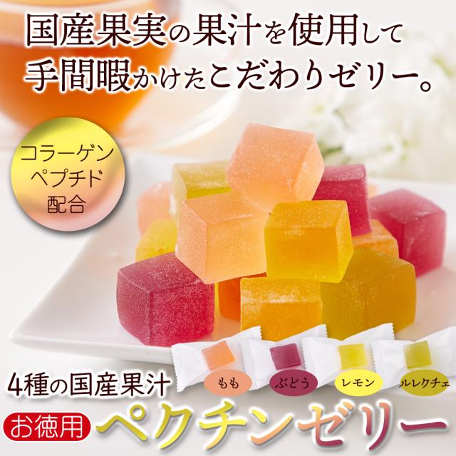 即納 送料無料 4種の国産果汁 ペクチンゼリー 500g お徳用 個包装 詰め合わせ ぶどう もも ルレクチェ(洋梨) レモン スイーツ お菓子 おやつ ペクチン ゼリー プレゼント ギフト バレンタイン ホワイトデー お彼岸